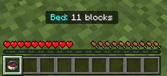- Compass: Shows the distance (in blocks) to the player’s spawn point. If the player hasn’t slept or their bed is missing, it shows the distance to the default world spawn