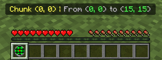 - Chunk Detector: Shows the chunk coordinates the player is currently in, along with the chunk boundaries